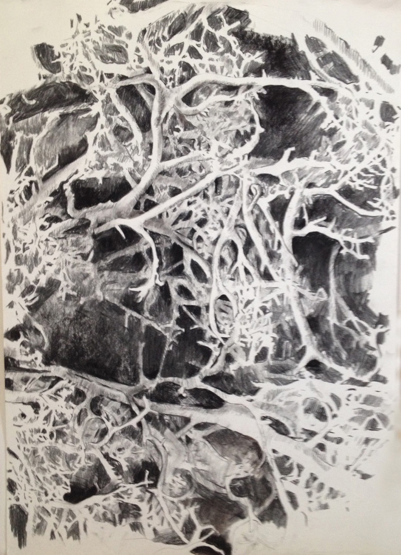 fusain, pierre noire, 60 x 80 cm, 2016